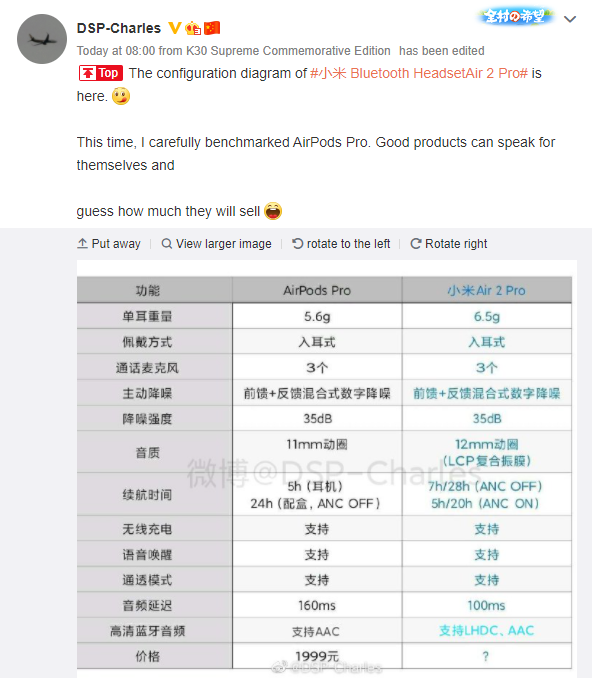 Shifting on, the earbuds will possible have a 12mm coil with an LCP composite diaphragm(English-translated) and noise discount depth of 35dB. The spec sheet says the Mi Air 2 Professional will help LHDC and AAC audio codecs.